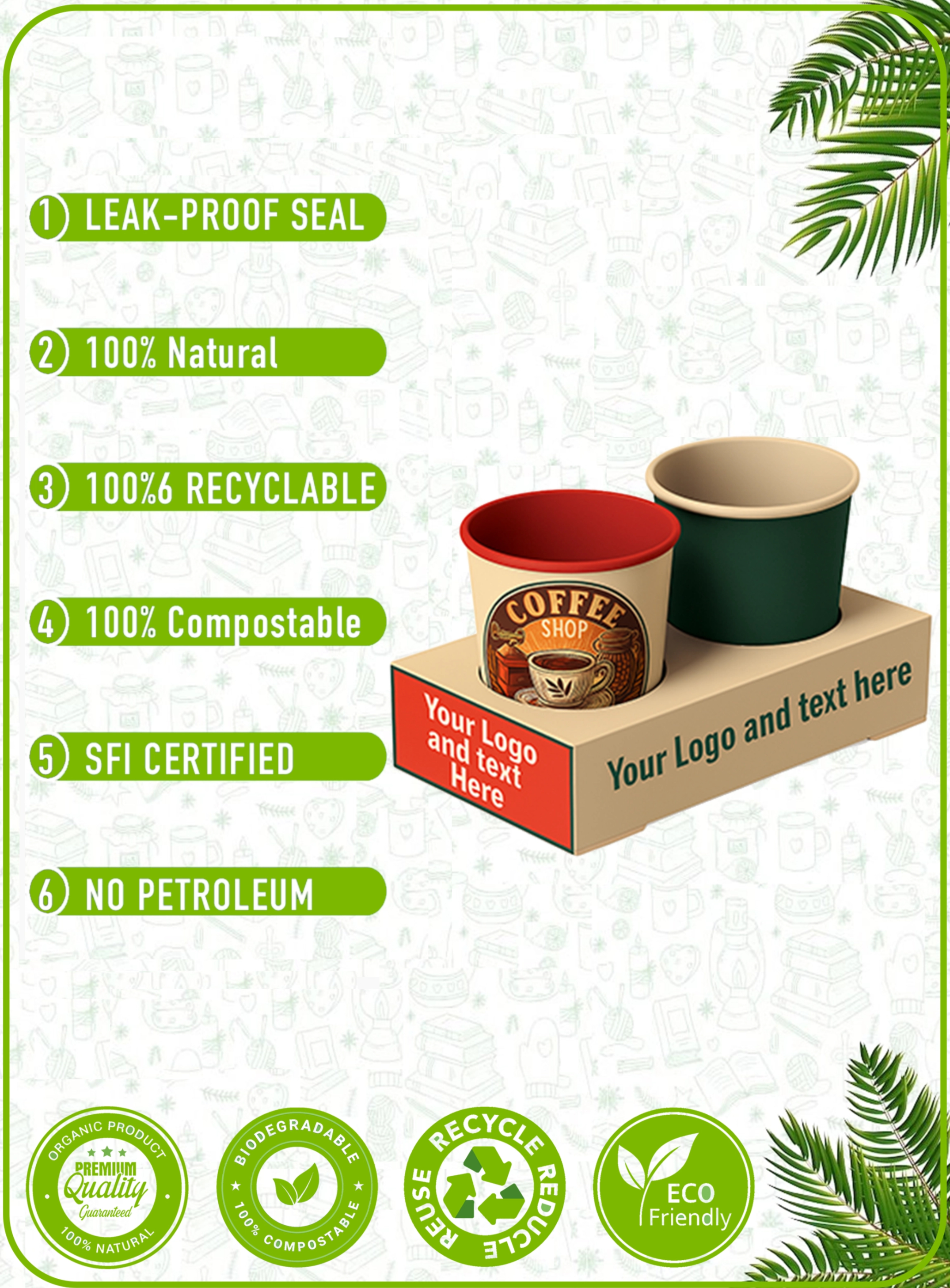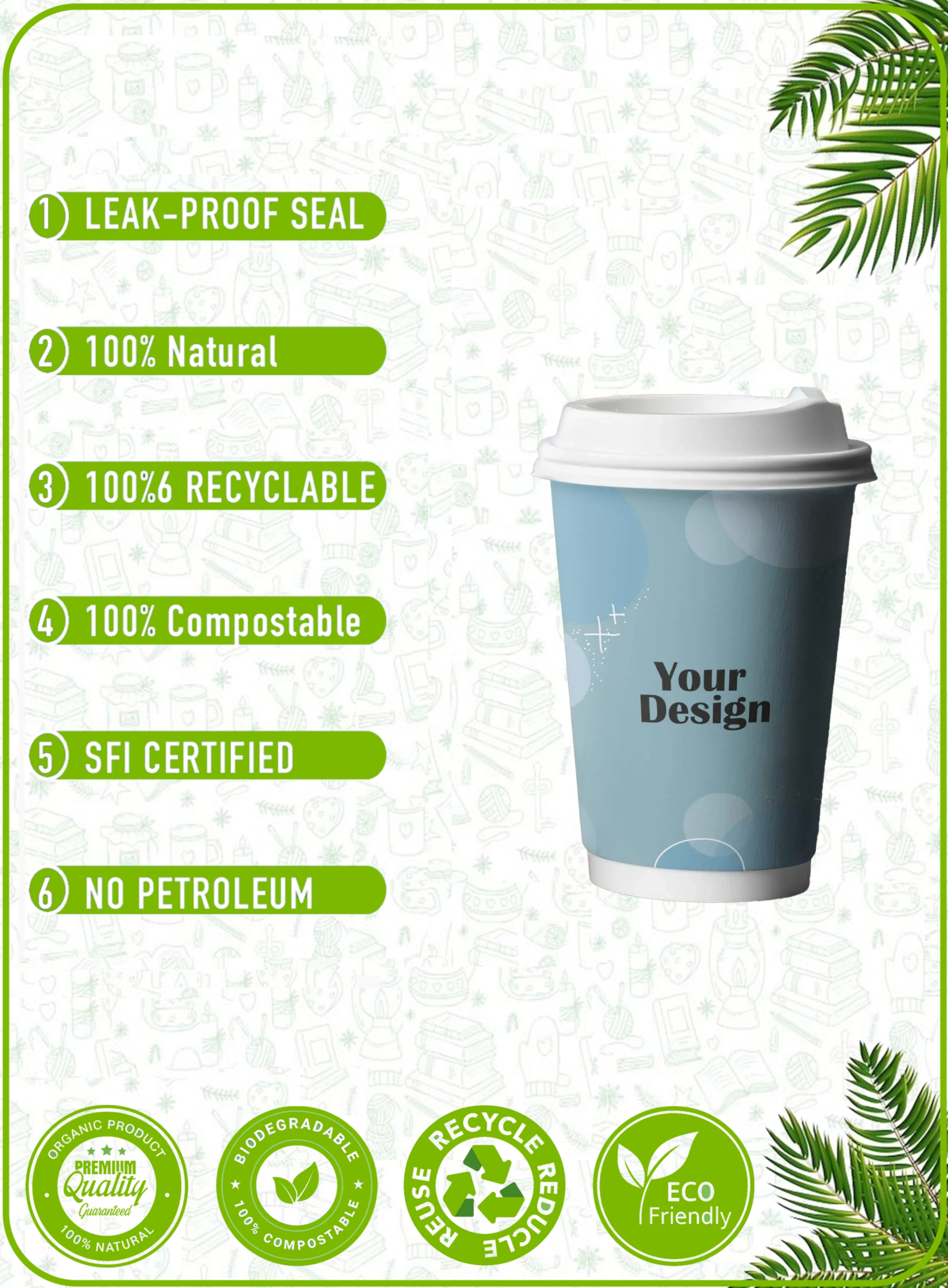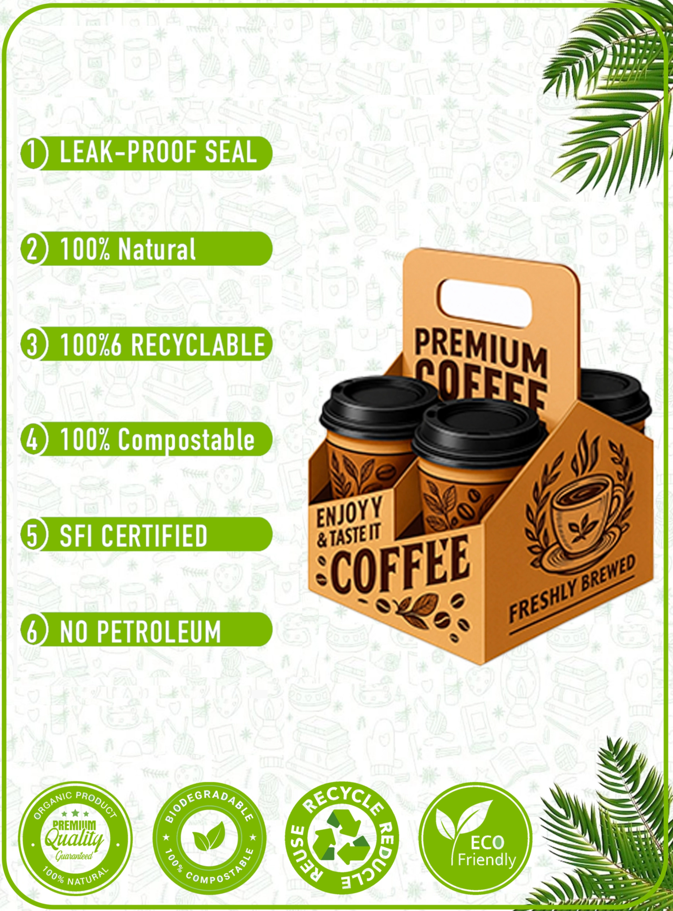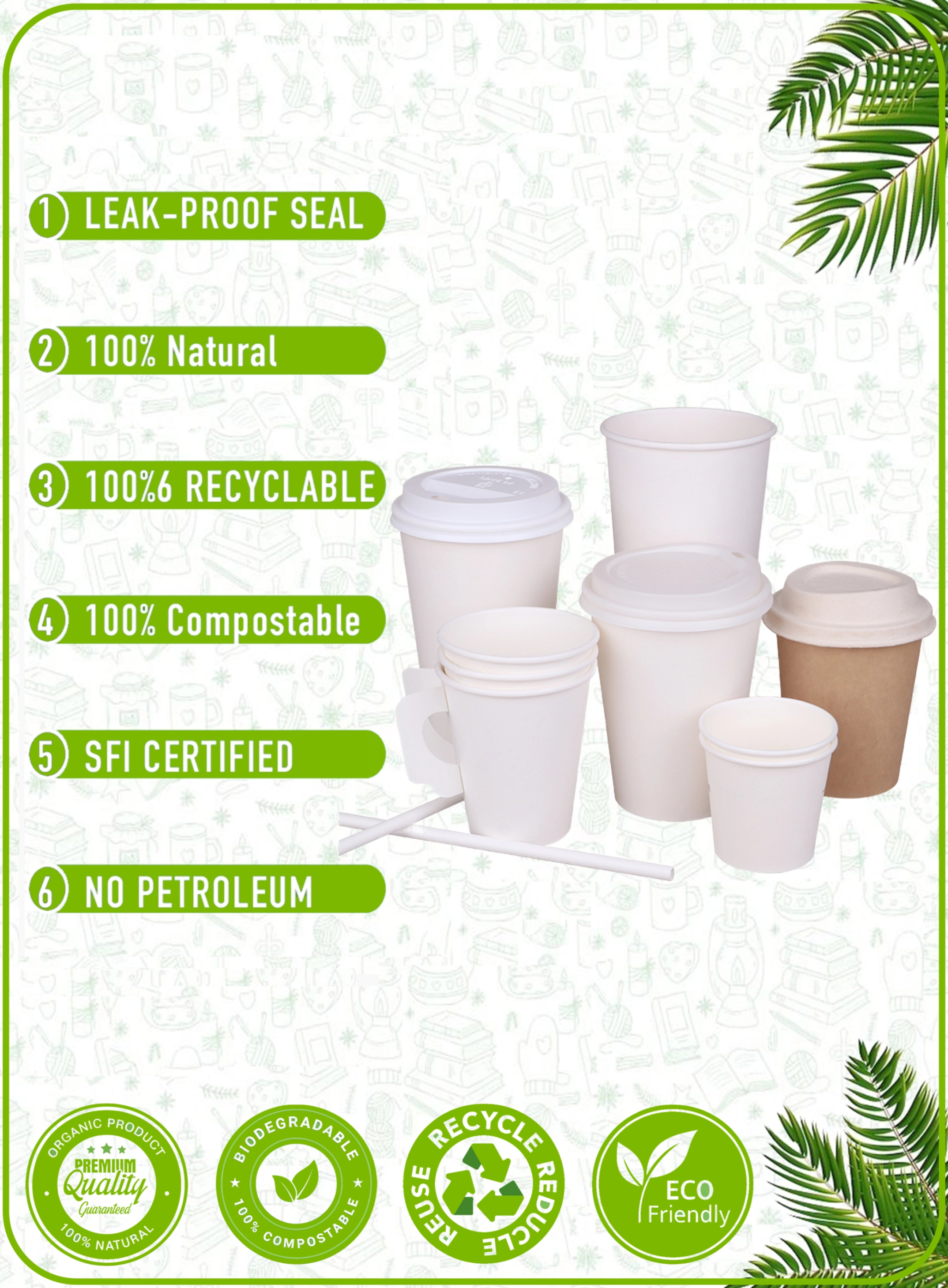 Our paper cups are crafted from responsibly sourced materials with plant-based linings. We prioritize eco-friendly solutions that reduce environmental impact without compromising quality. Every cup and packaging accessory is designed with circular economy principles in mind - from recyclable paper cups to compostable lids and biodegradable sleeves.