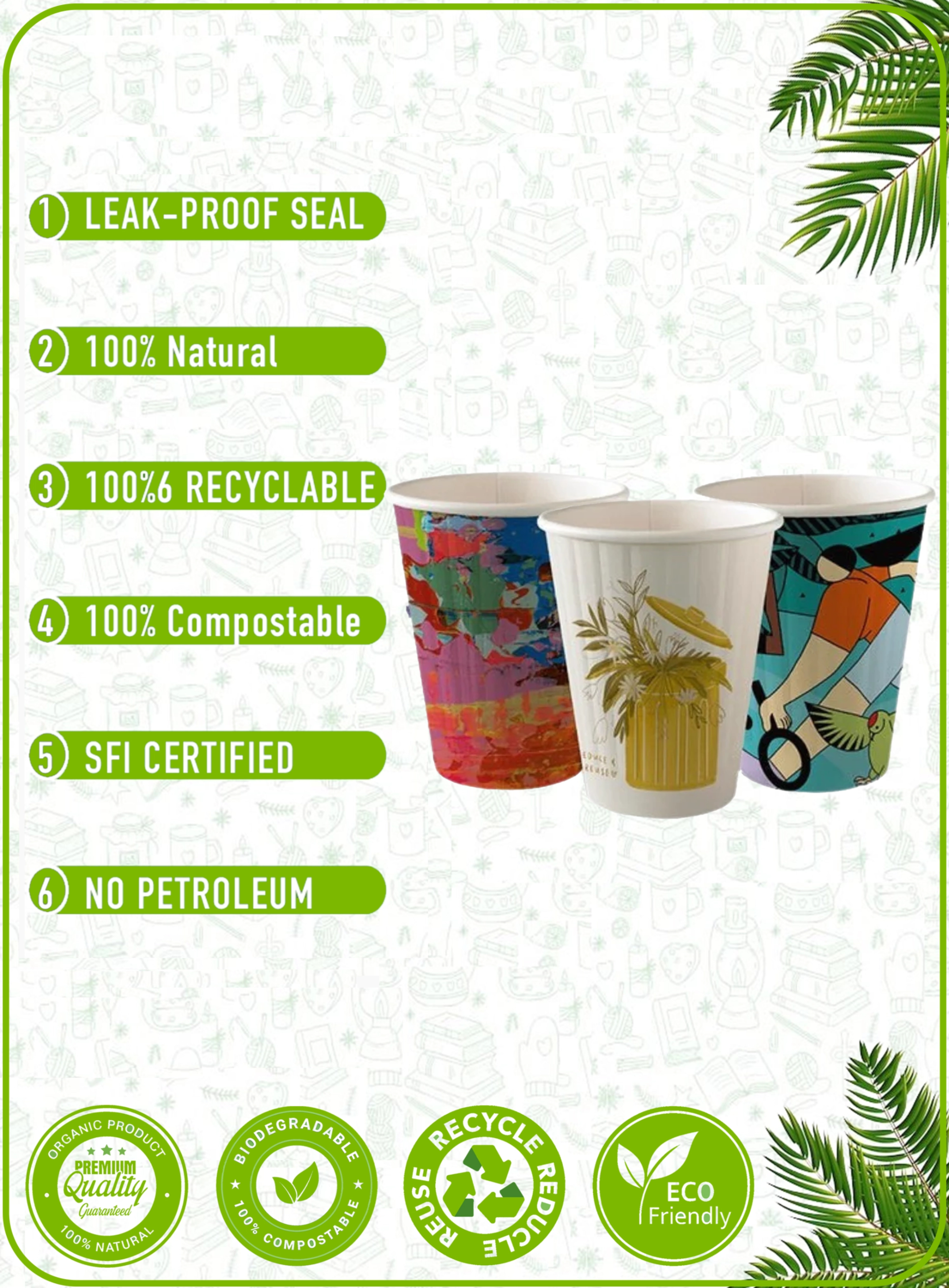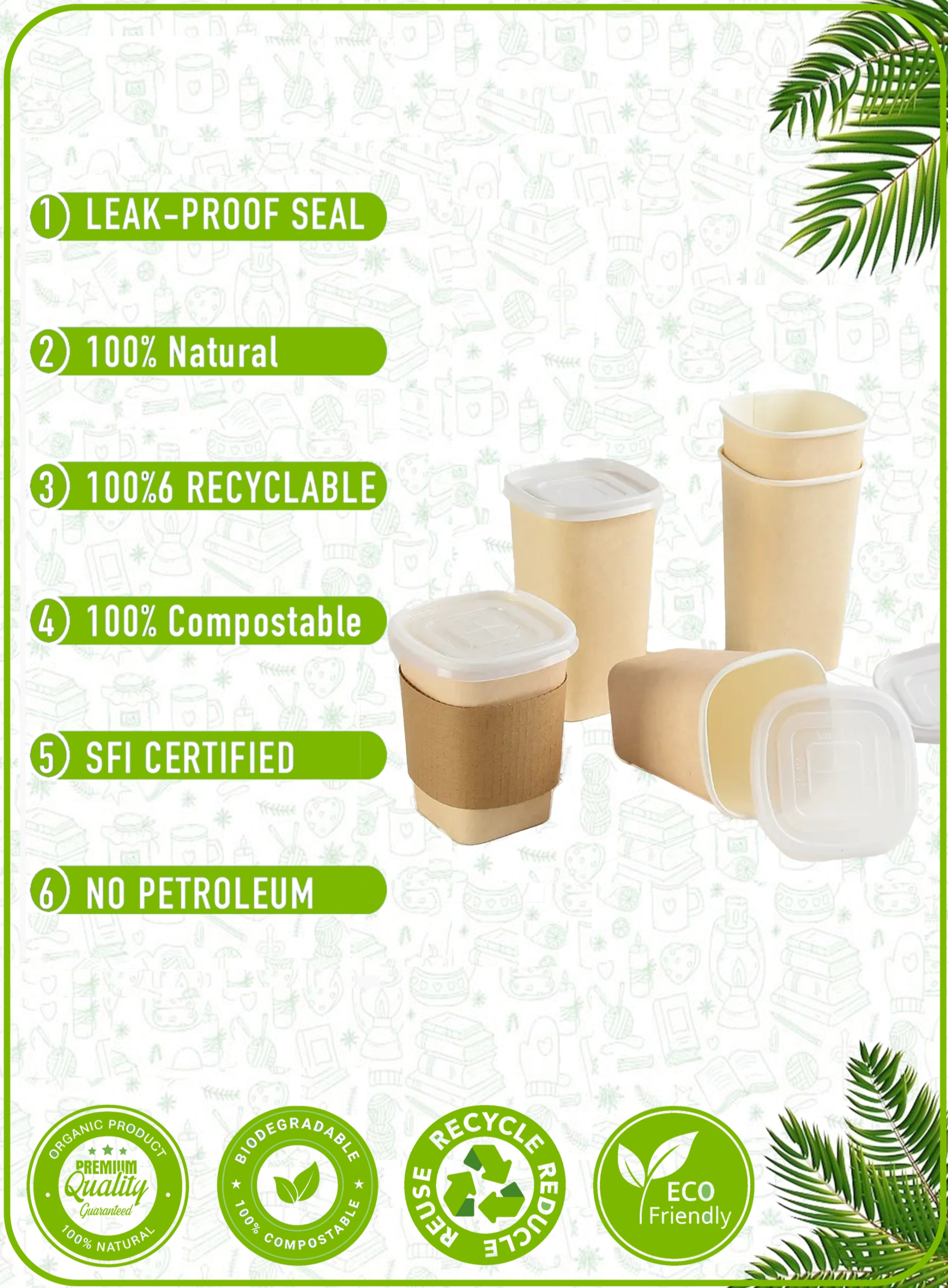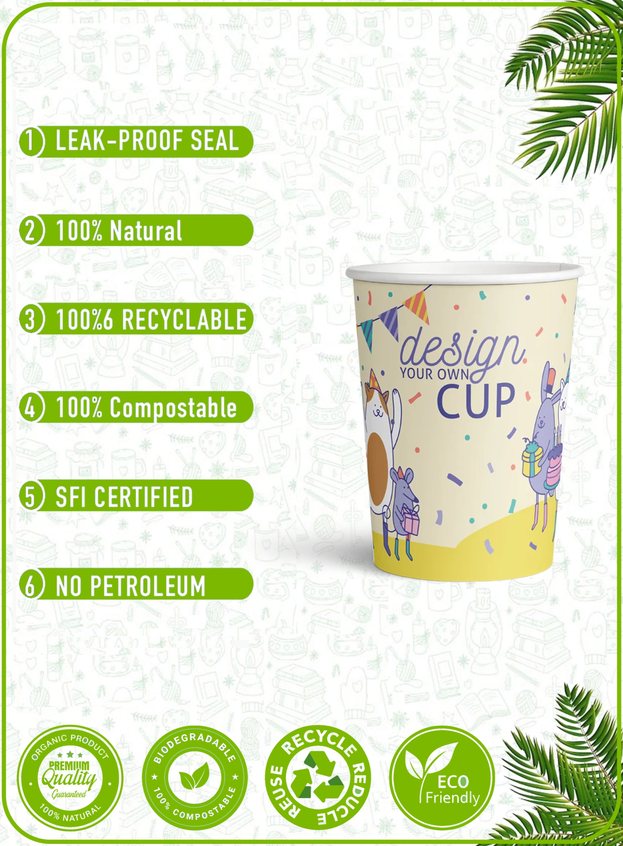Our paper cups are crafted from responsibly sourced materials with plant-based linings. We prioritize eco-friendly solutions that reduce environmental impact without compromising quality. Every cup and packaging accessory is designed with circular economy principles in mind - from recyclable paper cups to compostable lids and biodegradable sleeves.