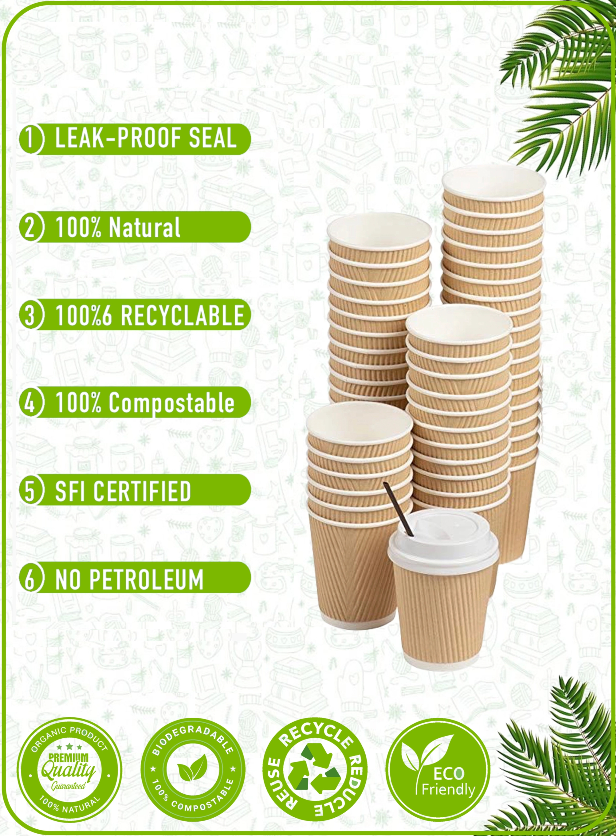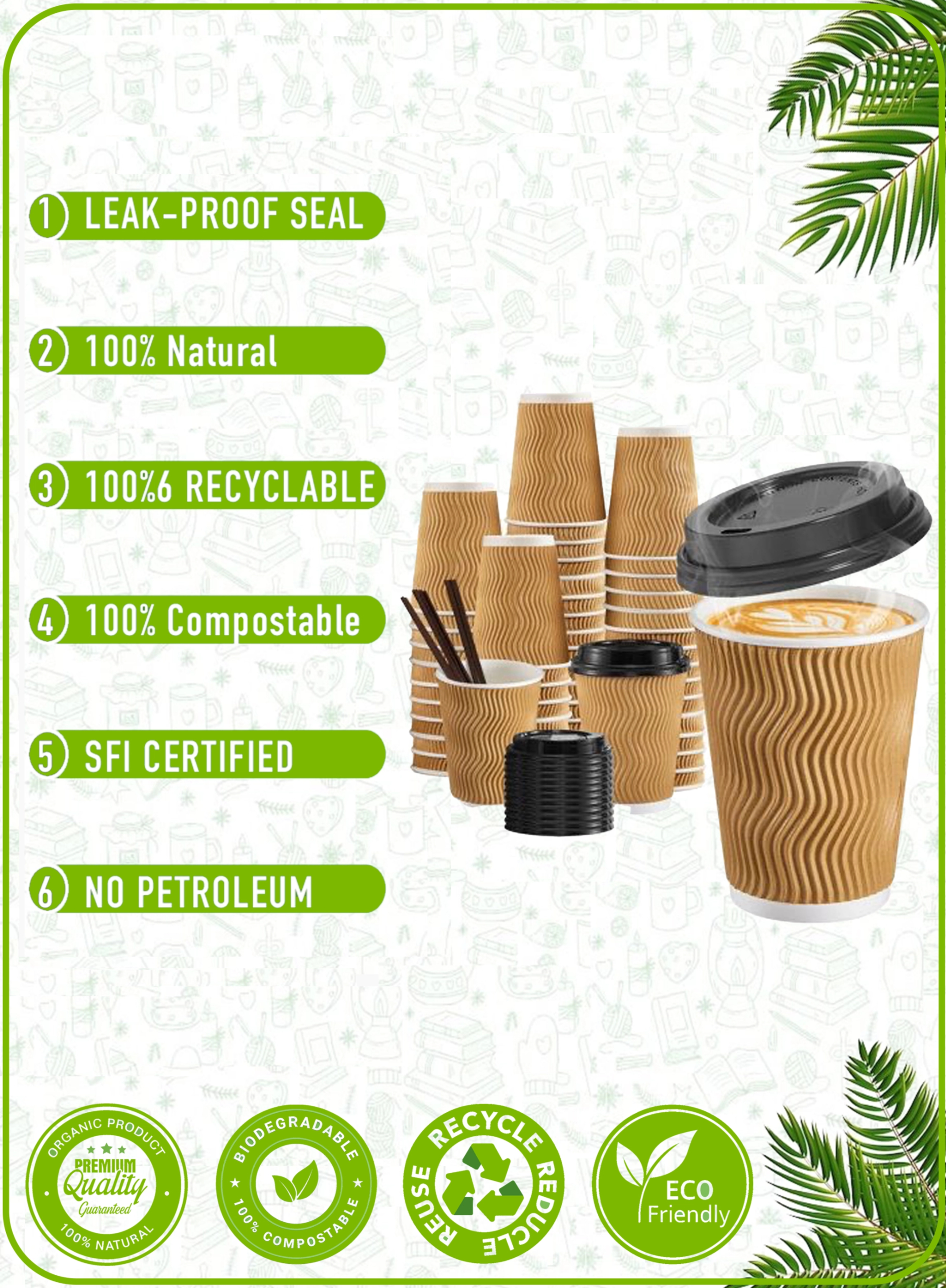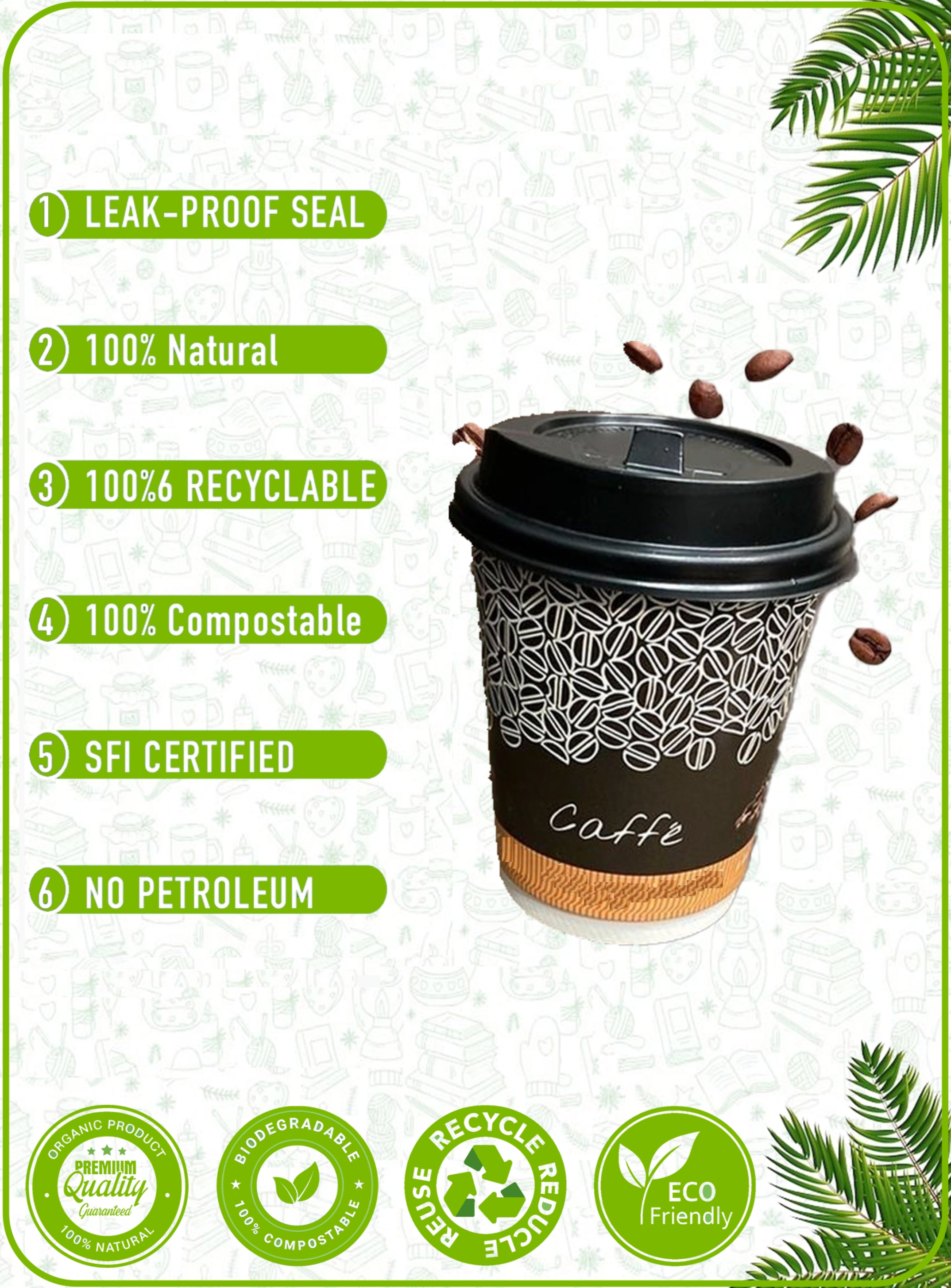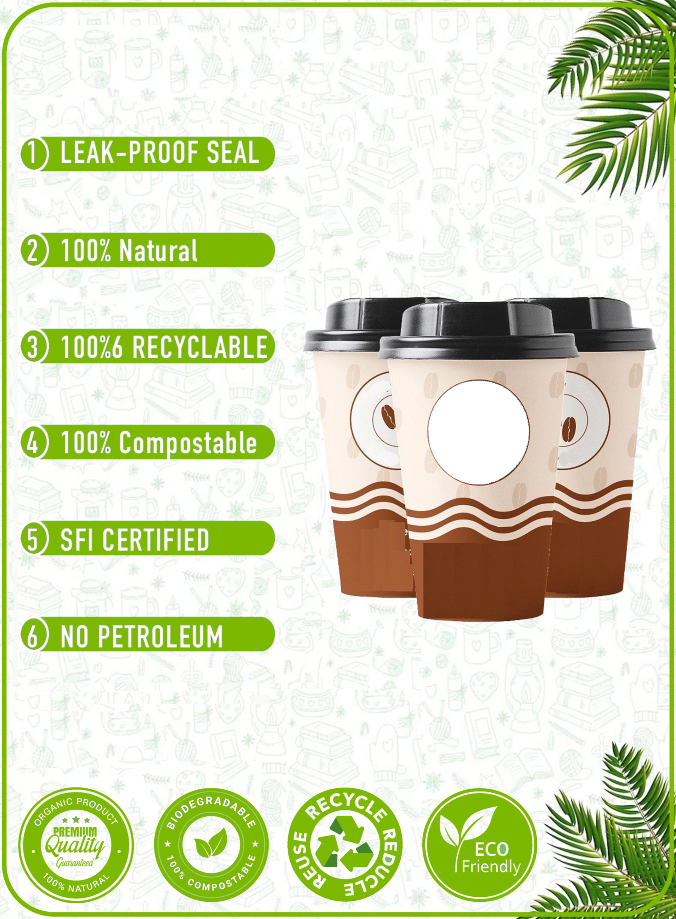Our paper cups are crafted from responsibly sourced materials with plant-based linings. We prioritize eco-friendly solutions that reduce environmental impact without compromising quality. Every cup and packaging accessory is designed with circular economy principles in mind - from recyclable paper cups to compostable lids and biodegradable sleeves.