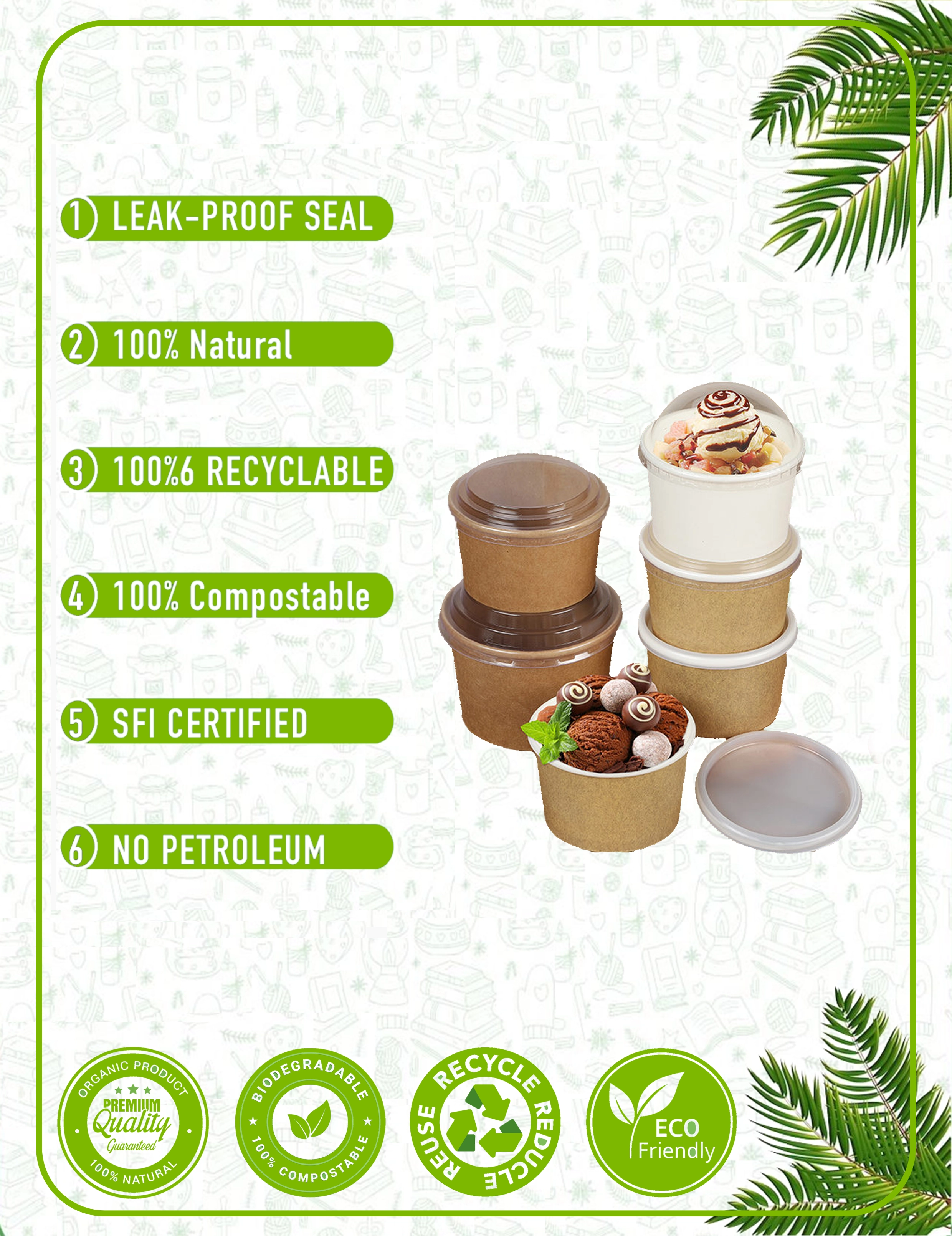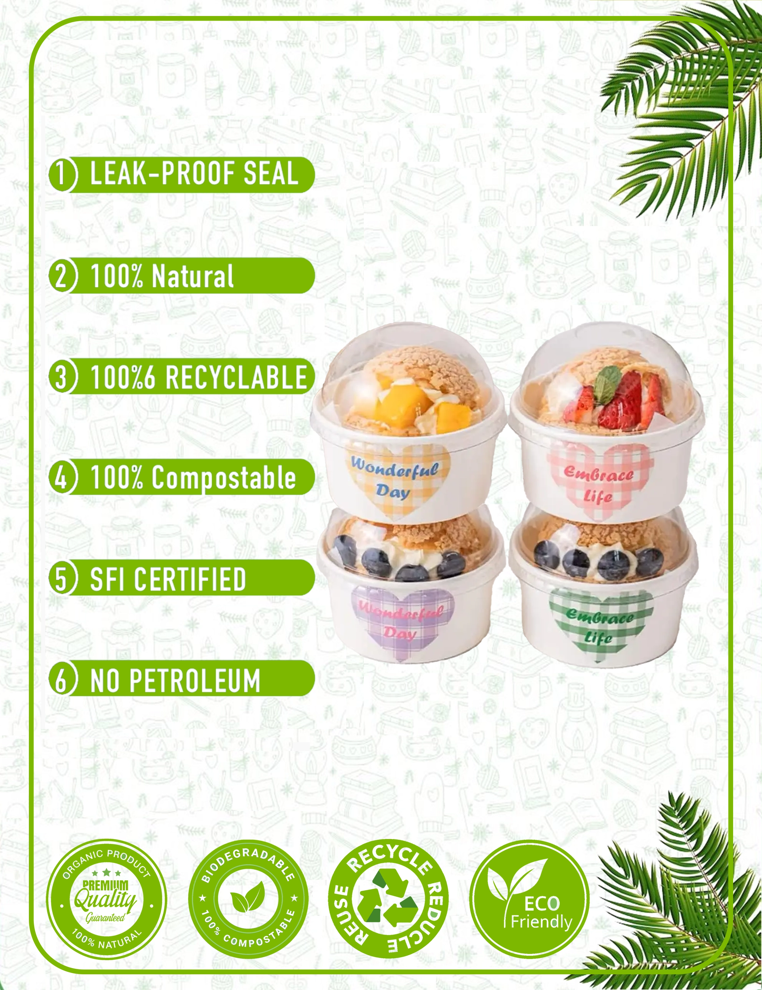 Material: Food-grade paperboard with PE or PLA lining