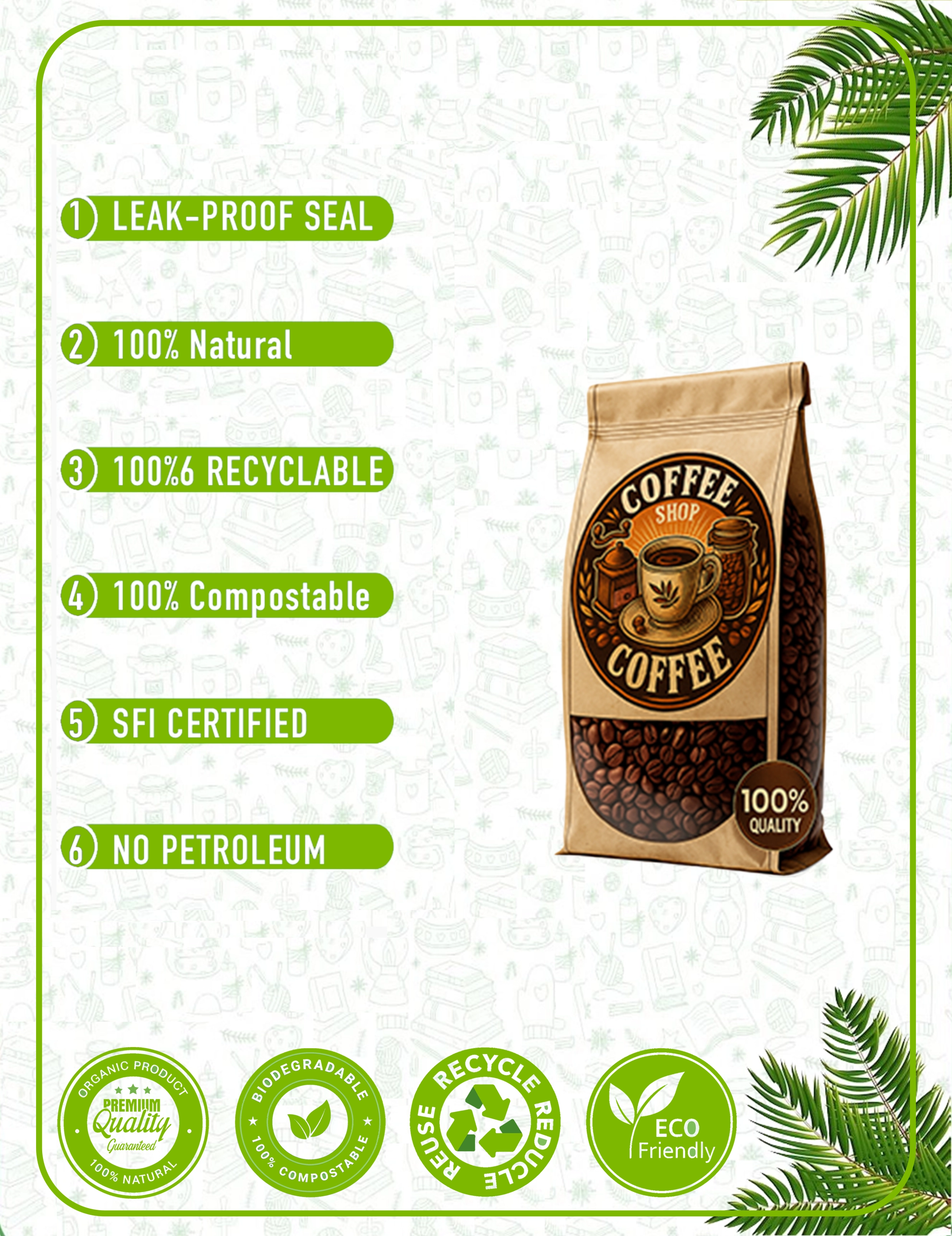 Brand your coffee shop packaging with your logo, colors, and unique identity for a cohesive and premium appearance.